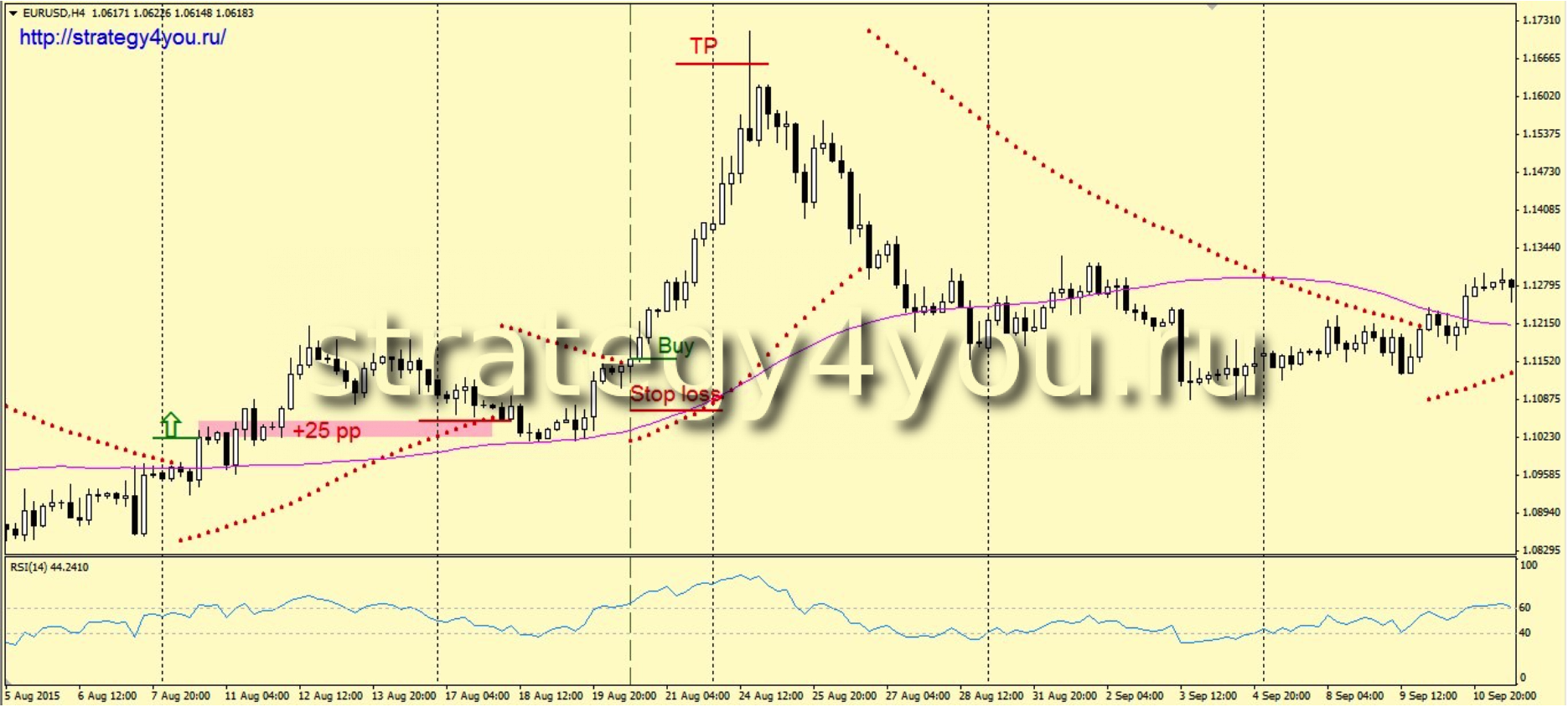 Условия для ПОКУПОК по стратегии форекс «+500»: