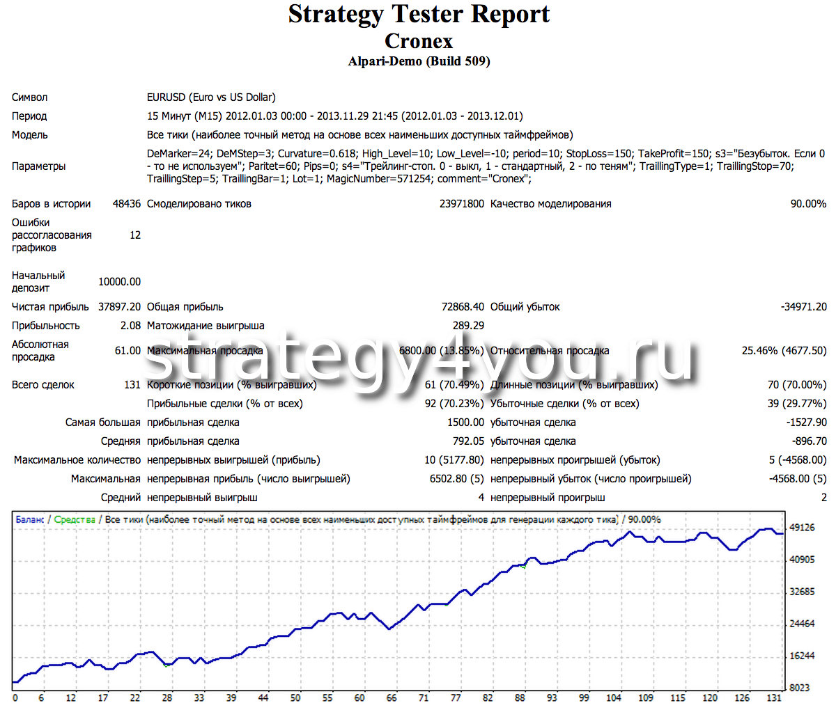 Отчет о работе советника форекс Cronex — EURUSD (M15):