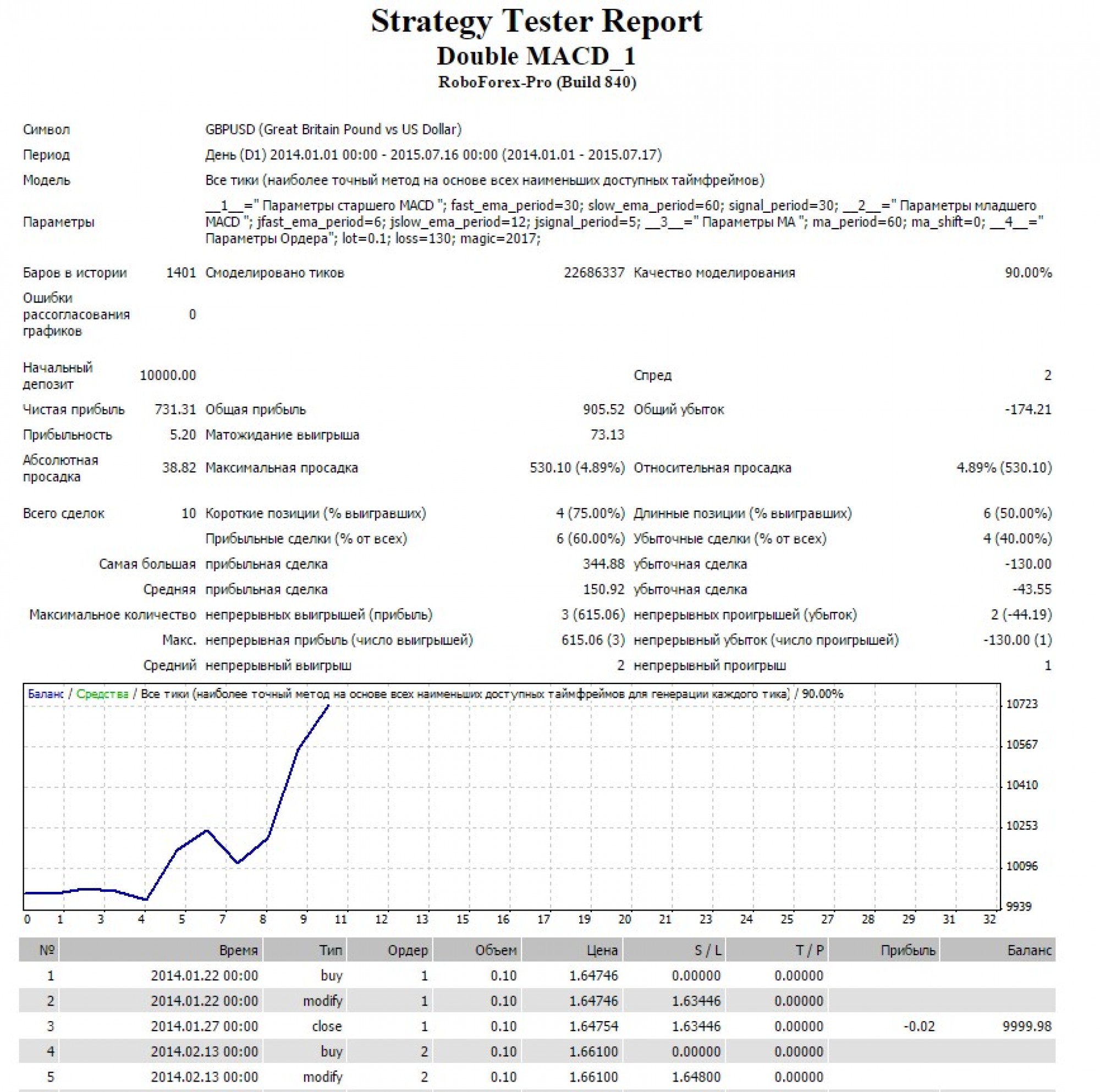 Вот результат по паре GBPUSD