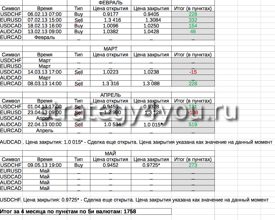 еще принимаю стратегии до конца недели следующей и месяца. Следовательно последнюю стратегию могу опубликовать максимум 31 мая!