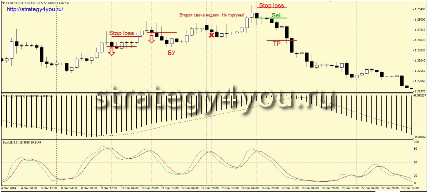 1) Если сигнал получен в течении первых и последних двух свечей недели, то данный сигнал игнорируем.