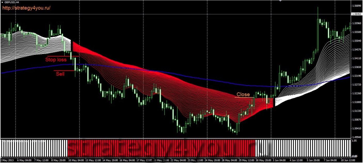2) Индикатор МА rsi – данный индикатор применяется 44 раза! Начиная с периода МА равного 7 и до 50. Совокупность всех этих линий далее будем называть облаком rsi. Для удобства установки вы можете воспользоваться готовым шаблоном для терминала МТ4, который можно скачать в конце стратегии.