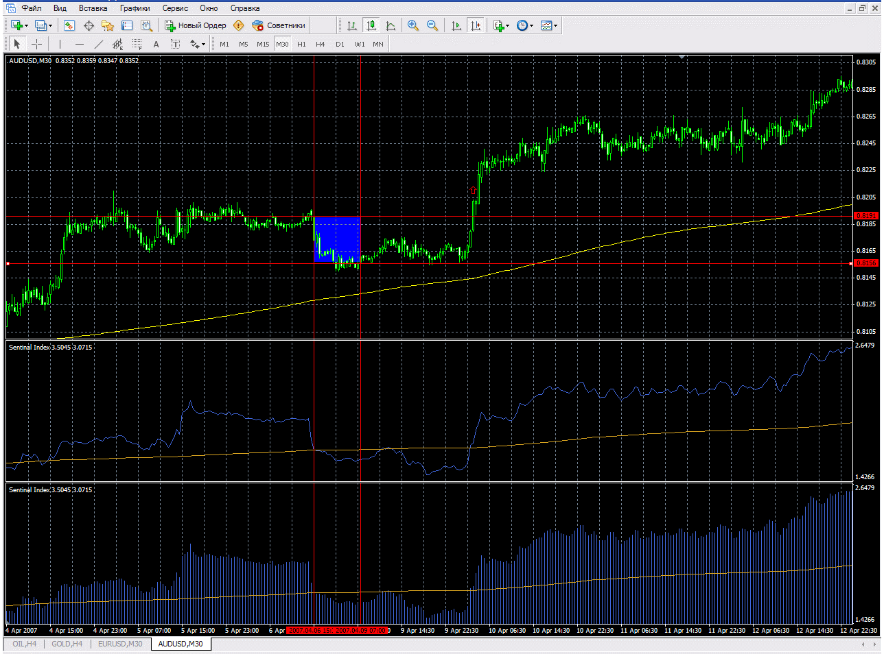 Не будем вдаваться в описание индикатора форекс Sentinal Index, я думаю это не столь важно, все-равно никто не будет пытаться его проверить (давольно крапотливая работа).