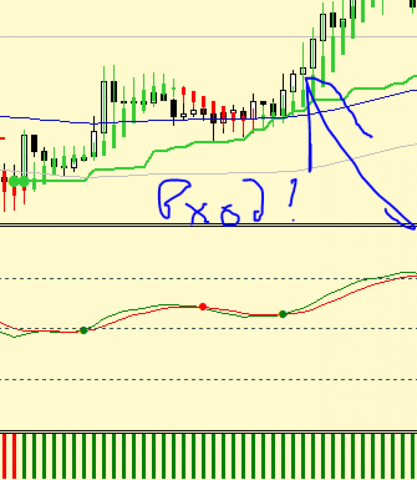 barselona, этот сигнал не торгуем. Вход в рынок только на закрытии свечи, на которой образовалась вторая жирная точка и при условии, что остальные индикаторы в этот момент подтверждают этот сигнал.