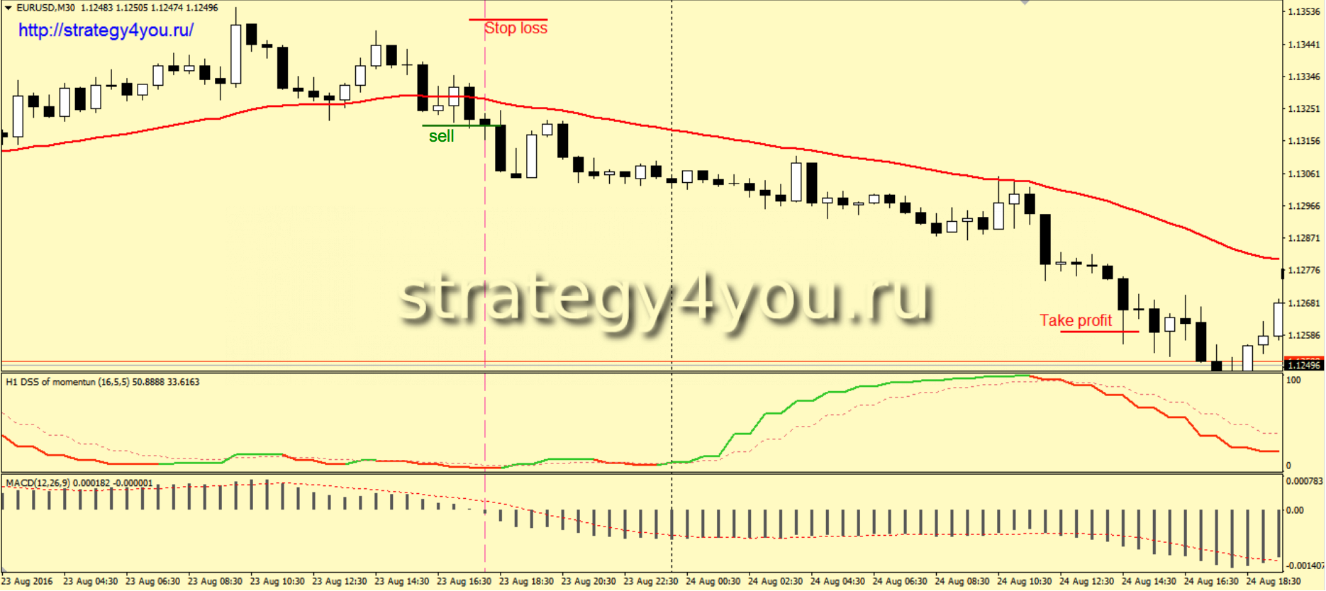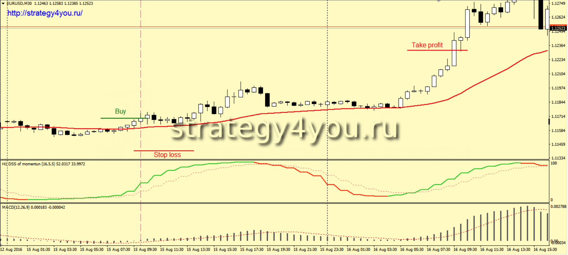 2) От индикатора DSS of momentum мы ждем следующие сигналы: