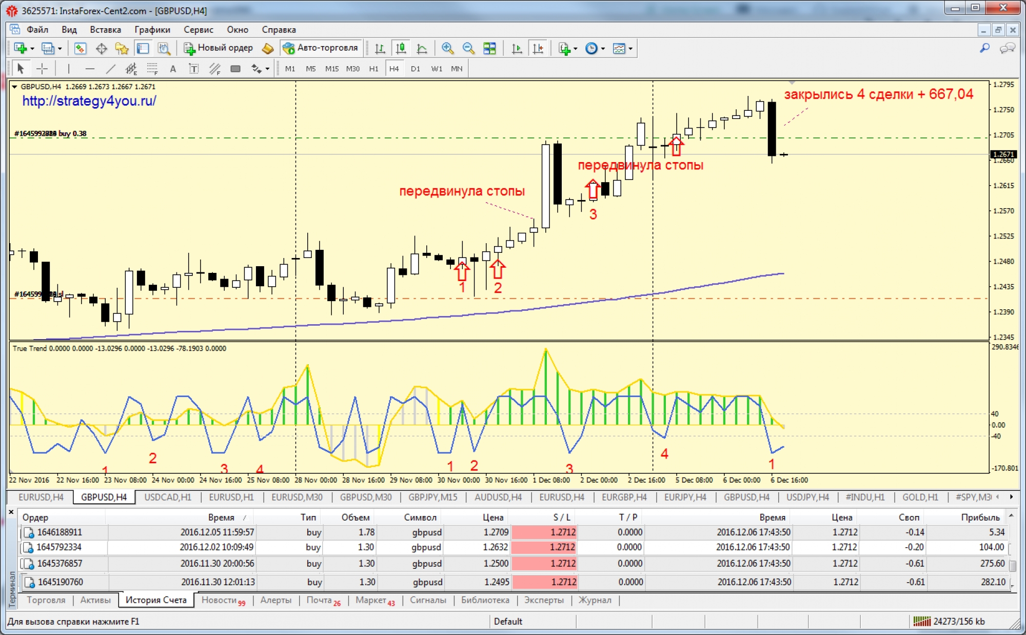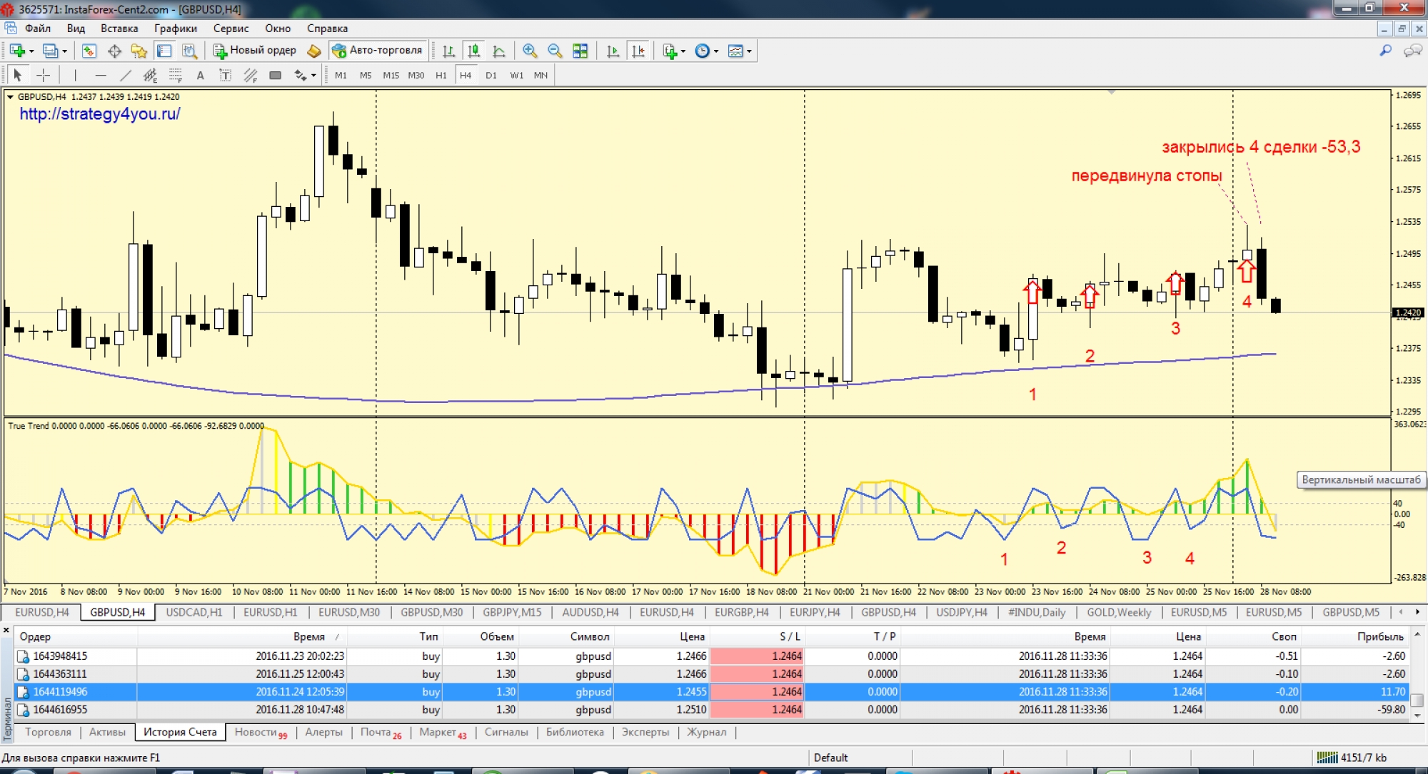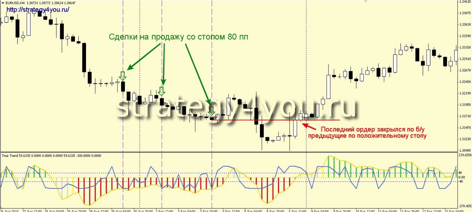 Индикатор к стратегии — True_Trend_JCL.ex4 (необходимо установить предварительно в МТ4, через каталог данных)