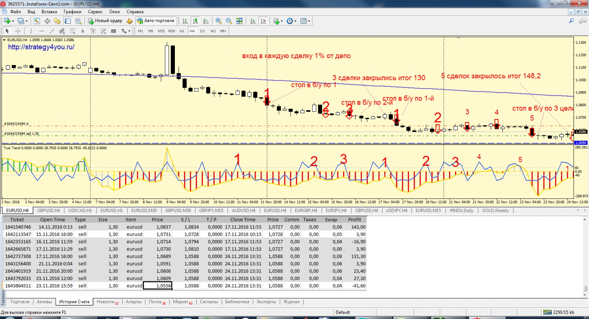 Это я торговала по этой стратегии с 14.11.16 по 30.11.16