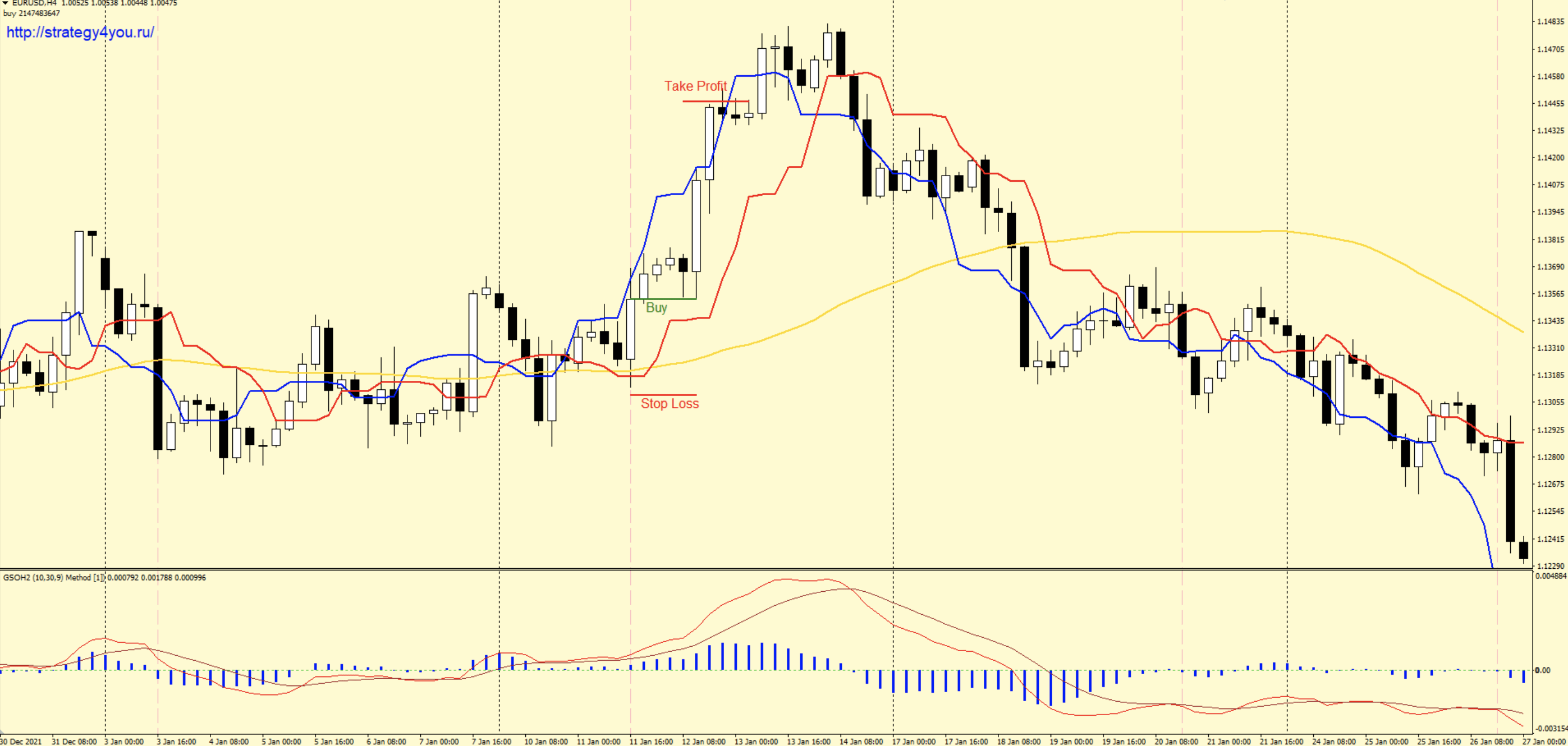 4) Именно это пересечение при условии сохранения всех предыдущих сигналов и является триггером для заключения сделки.
