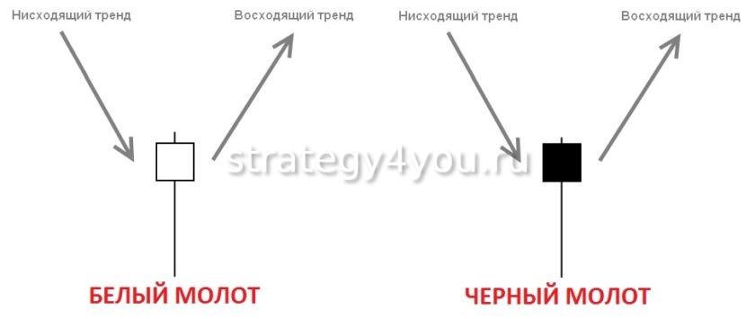 Паттерны Молот и Перевернутый Молот используют в торговле следующим образом:
