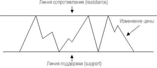 Когда цена на рынке не поднимается и не падает, это боковой тренд или флет Форекс. Учитывая то, что валютный рынок предполагает постоянные изменения цены, боковой тренд не говорит про их отсутствие. Просто все колебания цены находятся в определенном диапазоне, не совершаются по общему направлению – ни вниз, ни вверх.