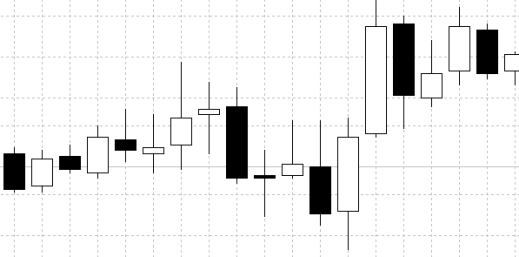 Чтобы построить график японских подсвечников (так еще называют японские свечи), берут те же самые сведения, что и в случае построения графика баров. Необходимо иметь цену открытия, минимальную и максимальную цены, цену закрытия. Расстояние между ценами открытия и закрытия ограничивается прямоугольником, который может быть белым или черным (это тело свечи). Тело будет белым, если цена открытия меньше, чем цена закрытия (цены росли), черным, если цена открытия выше, чем цена закрытия.