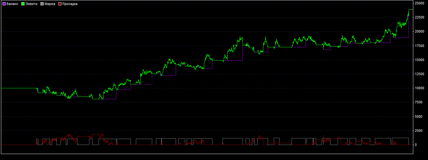 Как видим, график в основном восходящий, хотя небольшие просадки депозита тоже бывают, но они не такие большие и общая динамика — возрастающая.