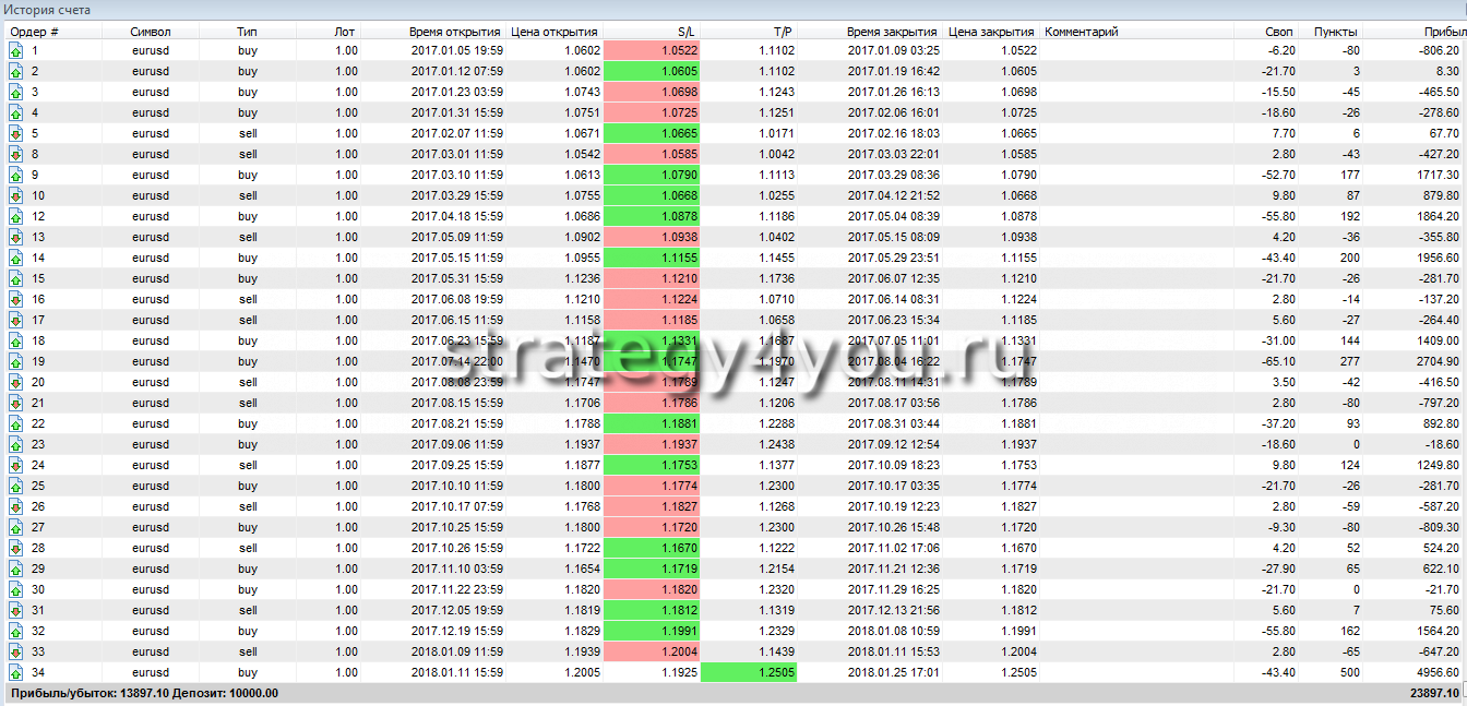 Сегодня рассмотрим тест трендовой стратегии форекс «+500», торговля ведется на валютной паре EURUSD (H4), сигналы получаем от индикаторов: RSI, Parabolic SAR, SMA (простая скользящая средняя), более точные параметры найдете по ссылке выше — в описании ТС.