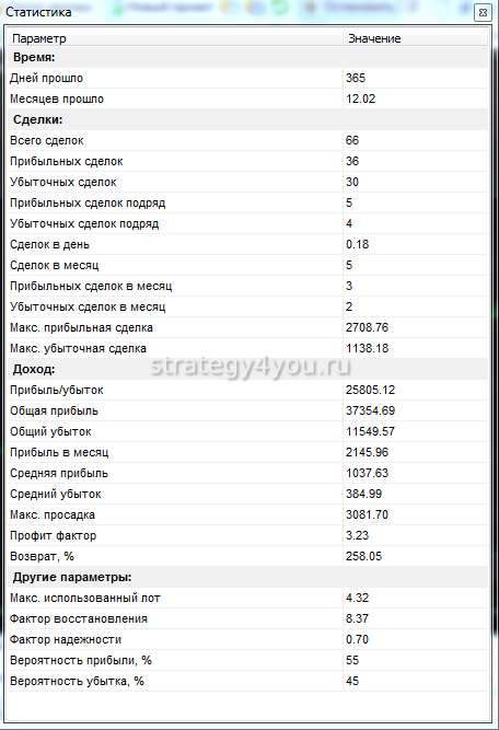 Всего сделок — 66. Прибыльных — 36. Убыточных — 30.
