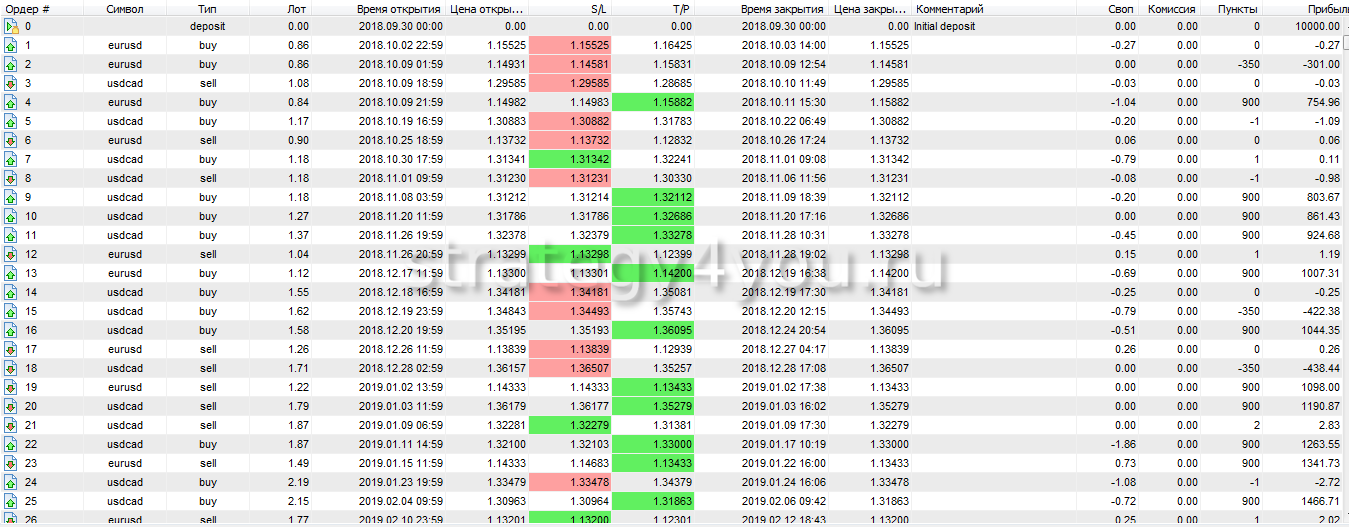 - Валютные пары — USDCAD + EURUSD (H1), промежуток теста — 12 месяцев (1 год). Подробное описание вы найдете по ссылке выше.