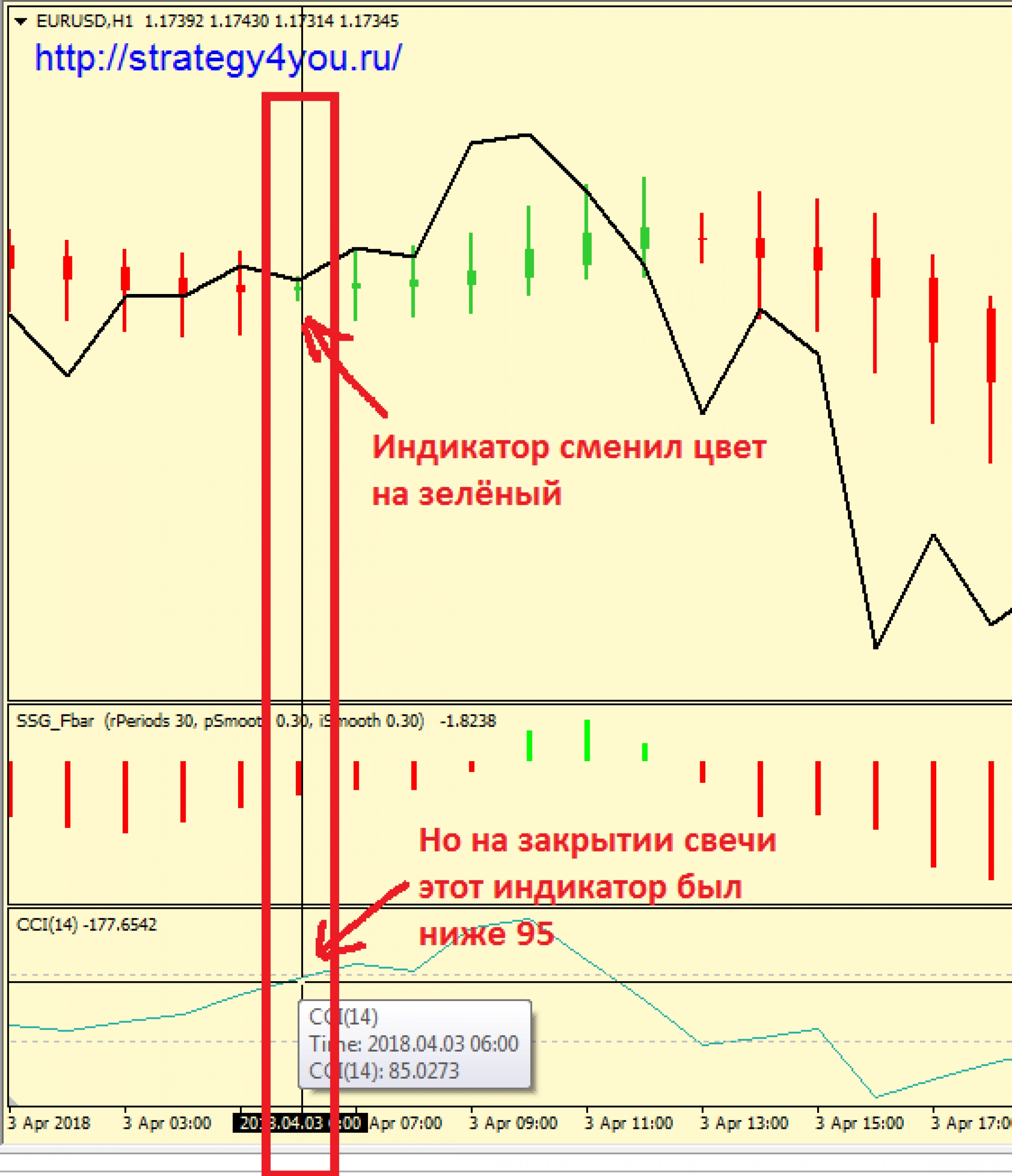 Ведь на свече, на которой HASignal стал зелёным, CCI закрылся ниже уровня в 95, а значит мы должны игнорировать сигнал. Разве нет?