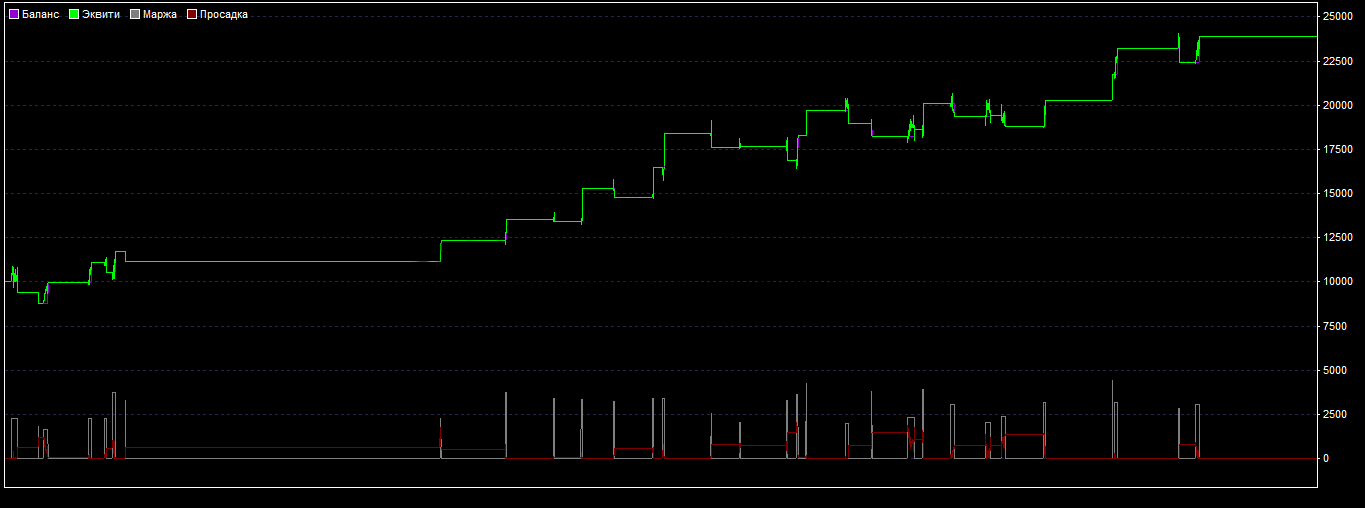 На графике видна восходящая динамика, а это говорит о том, что стратегия оказалась прибыльна за выбранный период.