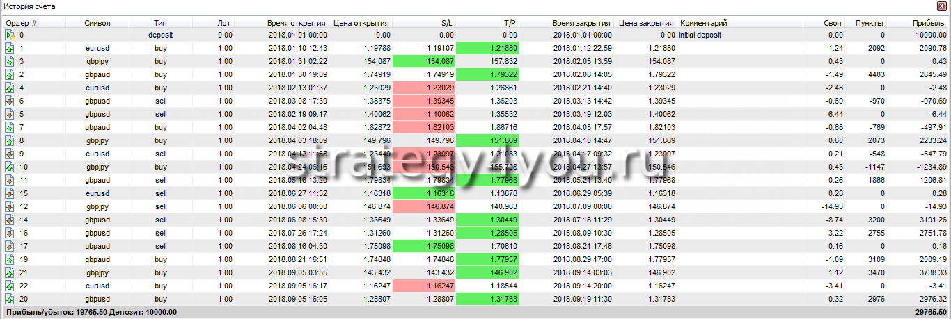 Результат за 9 месяцев: +197,65% — не много, но тоже неплохо, особенно если учитывать, что это безиндикаторная и довольно простая стратегия форекс.