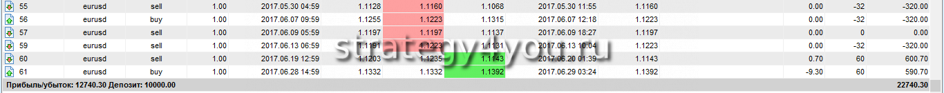 Торговля проводилась сразу по нескольким парам: EURUSD