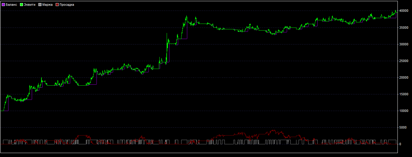 Как видим график не всегда идет только вверх, есть и периоды застоя, но просадок не наблюдам, что очень хорошо в нашем случаи.