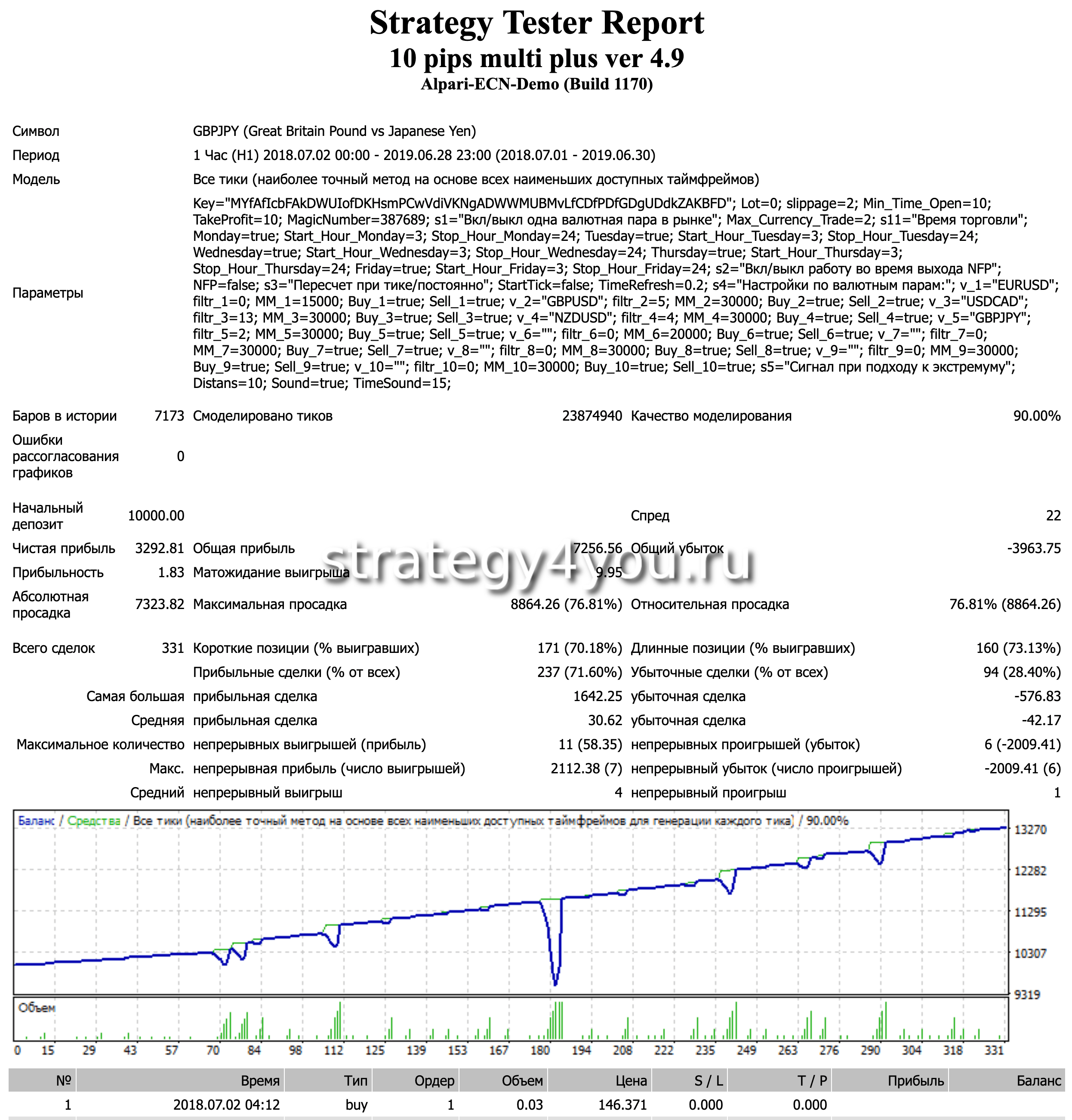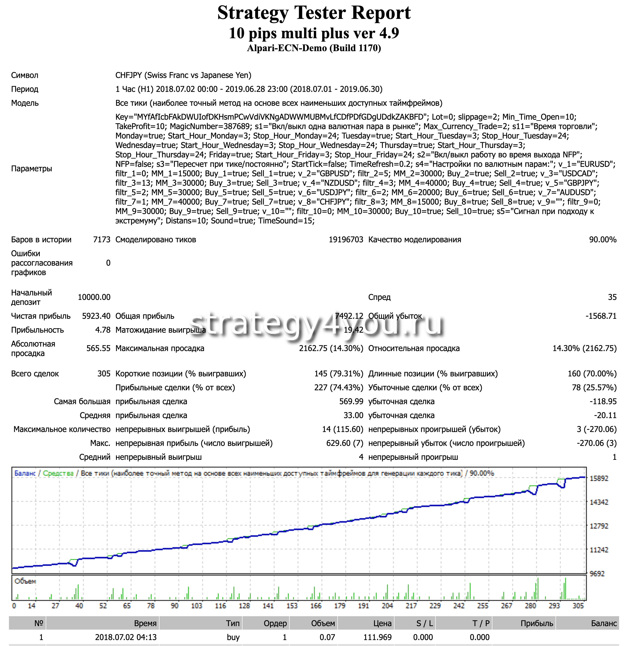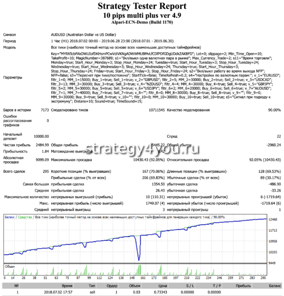 Подробные отчеты по доходности торговой системы «10 pips + Martingail» за период с 1/07/2018 по 30/06/2019 включительно — 12 месяца