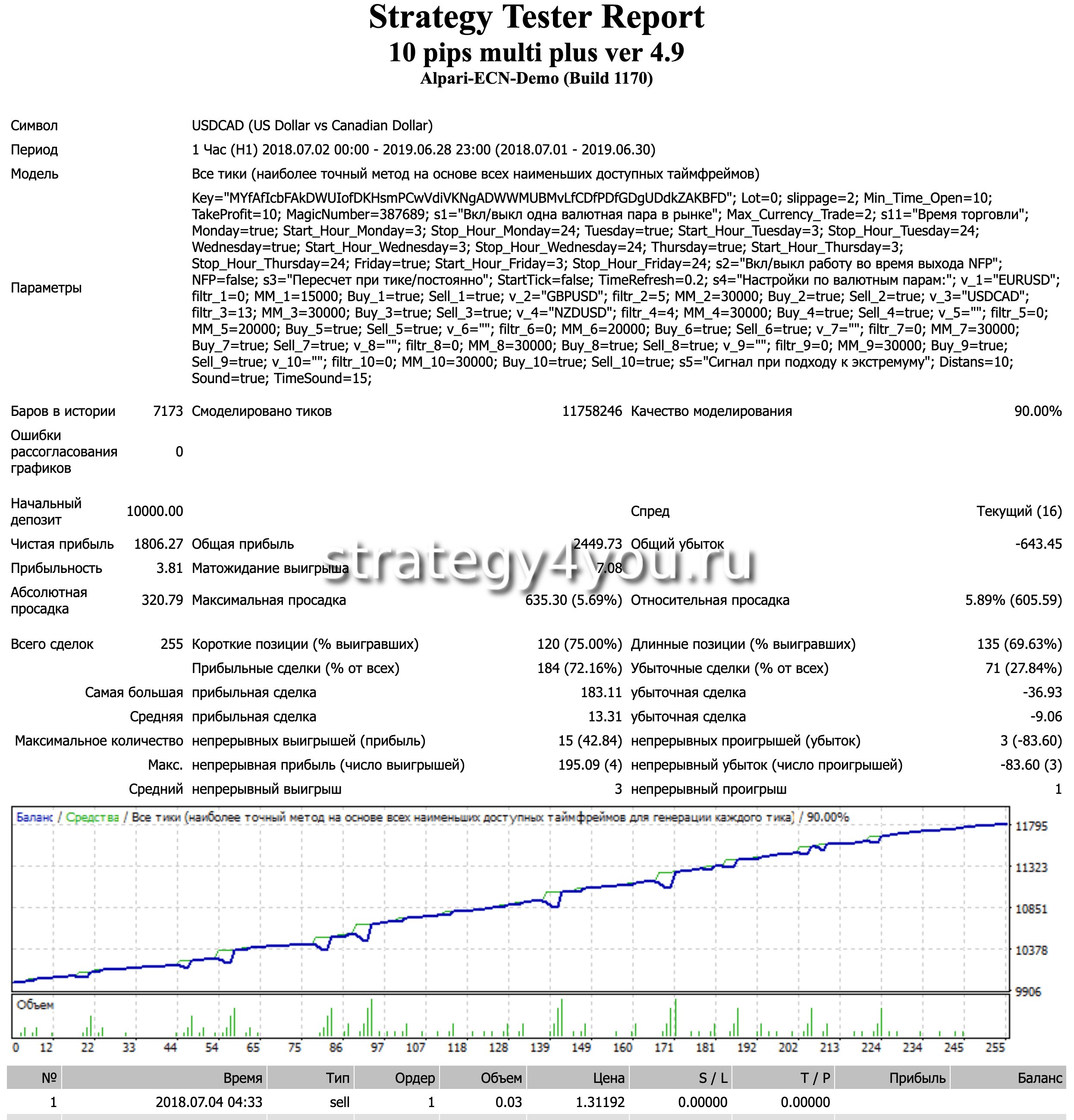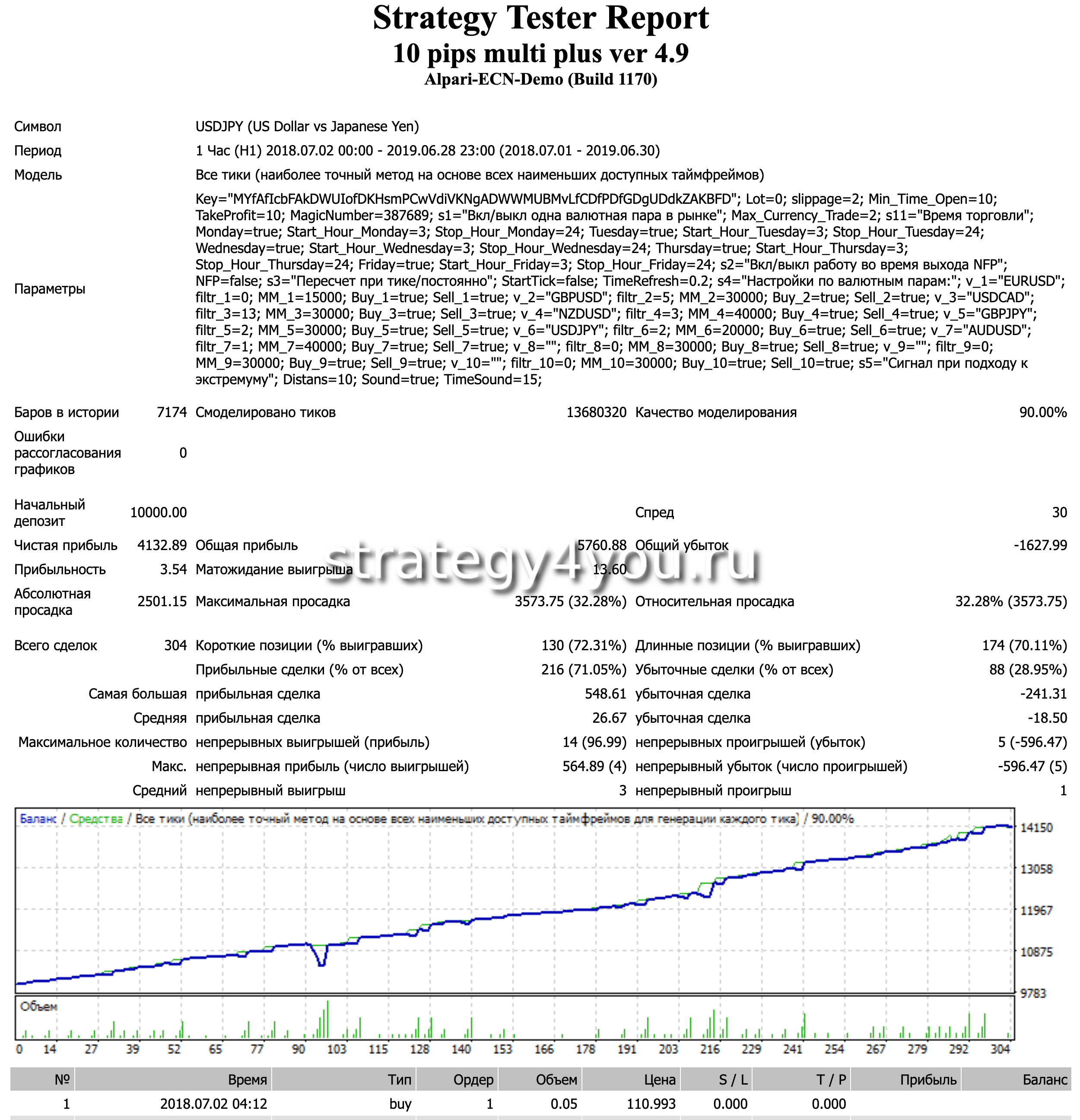 Советник ранее был платным и продавался на сайте. На этот момент мы сняли все автоматические роботы с продажи и этот в том числе. Но проведя тест, увидели, что он все-таки способен приносить прибыль.