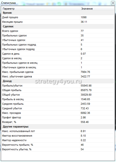 Валютная пара — USDCAD (D1), результаты опубликованы за 36 месяцев (3 года). Подробное описание смотрите по ссылке выше.