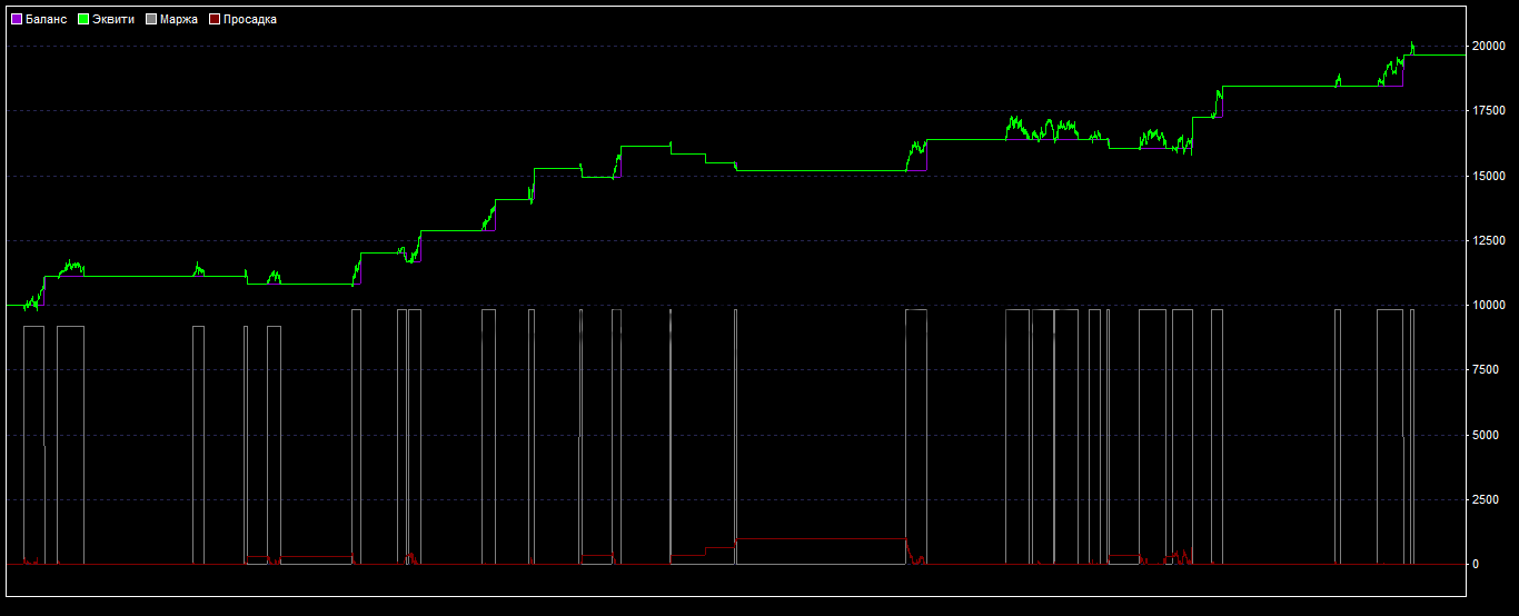 График восходящий, момента застоя тоже имеются, просадок депозита больших нет, следовательно стратегия вполне рабочая.