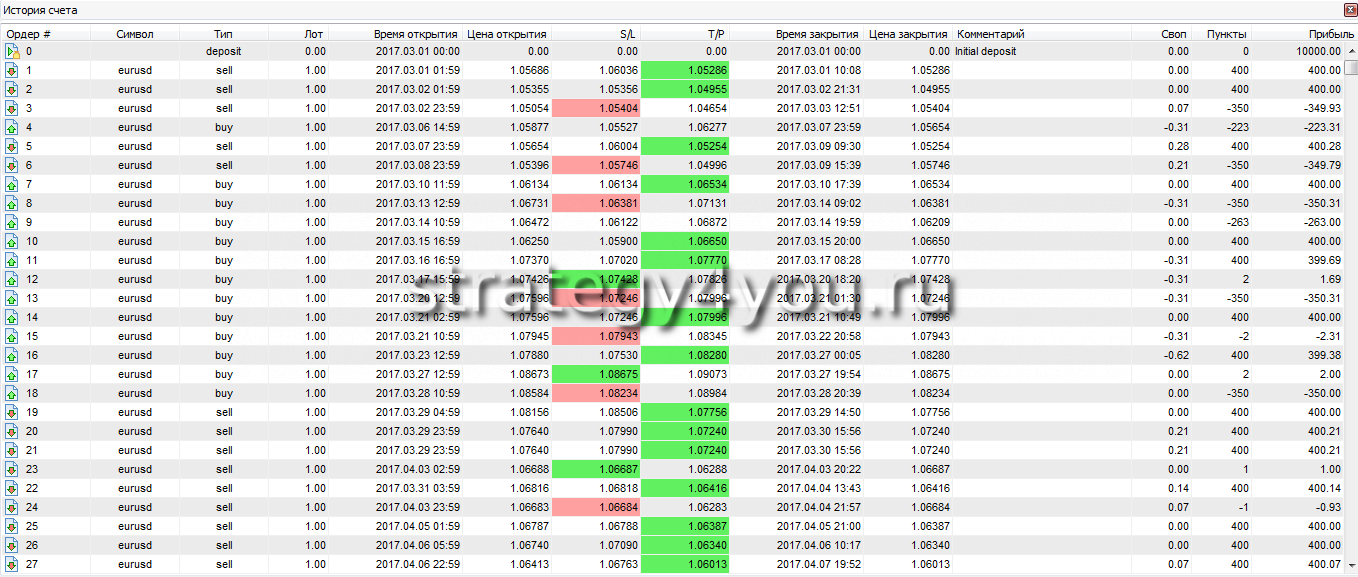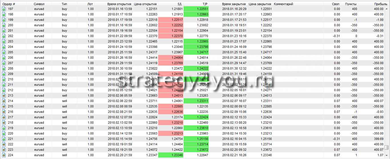 Подробный отчет по стратегии за указанный период: