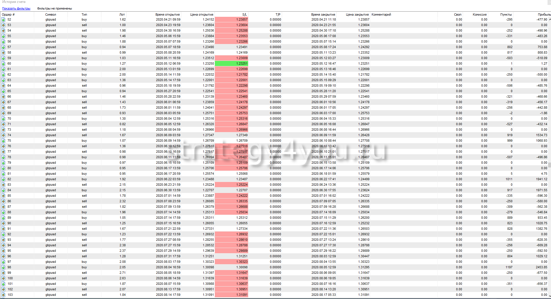 Заключение: прибыль за 12 месяцев тестирования ТС Бандитос: +184,77% по паре GBPUSD (H1) — вполне средний показатель для тестов стратегий этого сайта, но ТС вполне стабильная и это главное, поэтому если она вам подходит по стилю торговли, то вполне можете ее использовать в своем портфеле для получения прибыли.