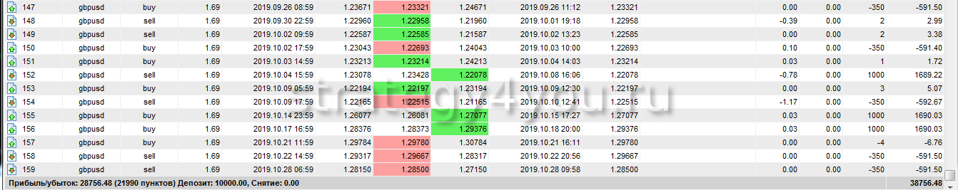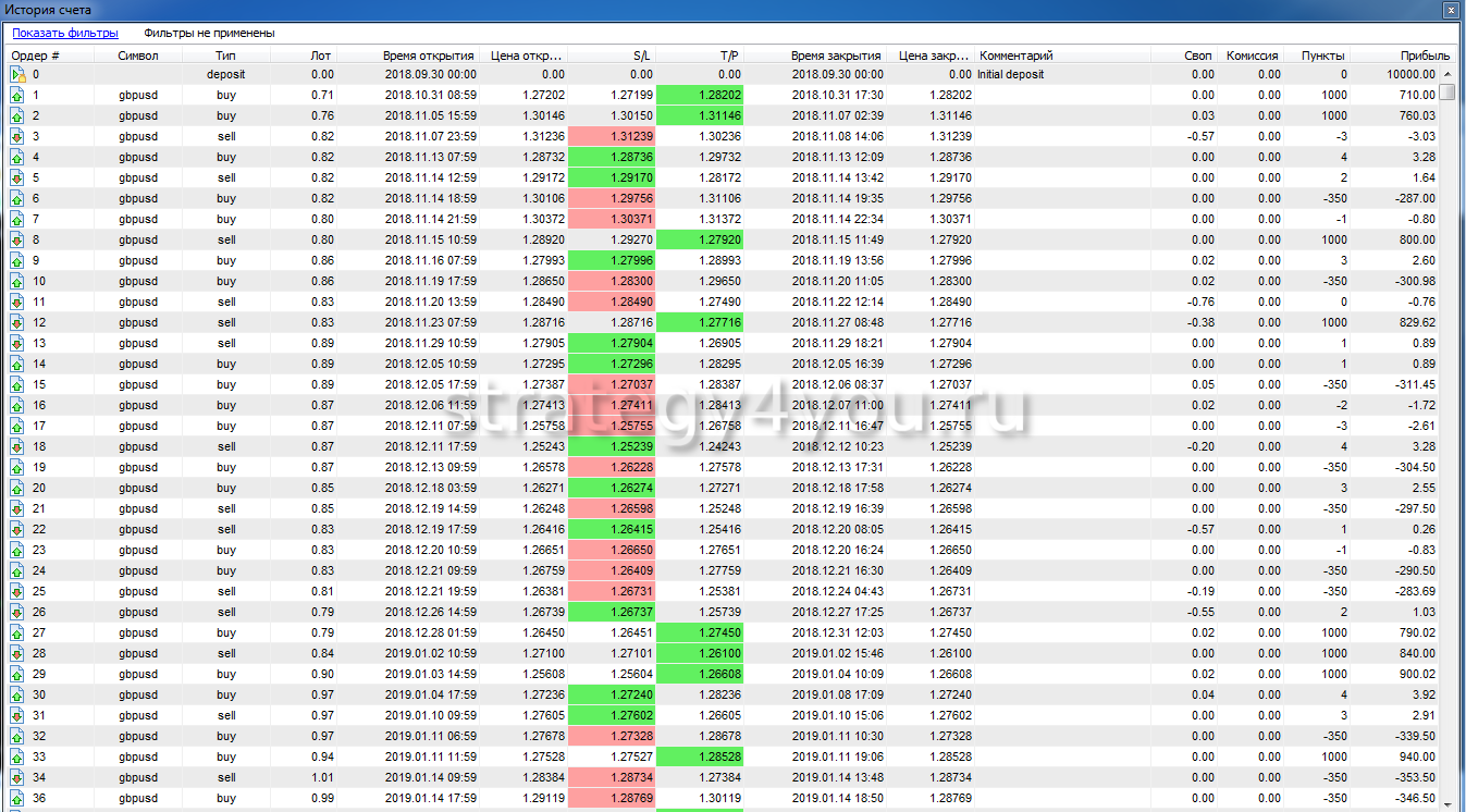 - Валютная пара — GBP/USD (H1), промежуток теста — 13 месяцев. Подробное описание вы найдете по ссылке выше.