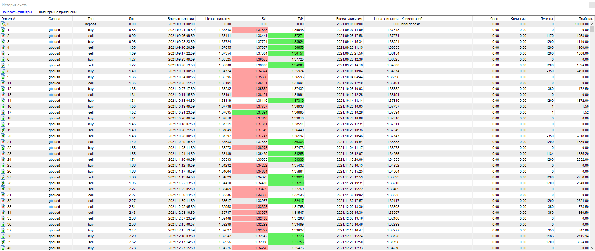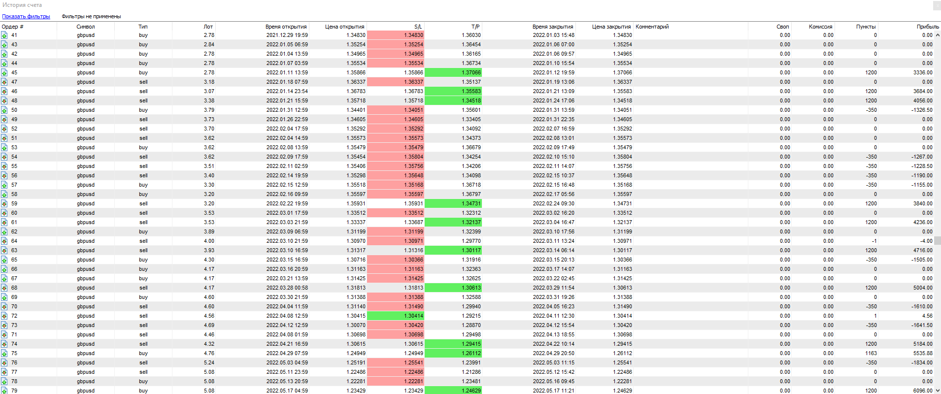 Подробный отчет по всем заключённым сделкам этой стратегии смотрите ниже:
