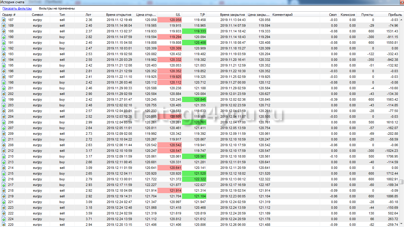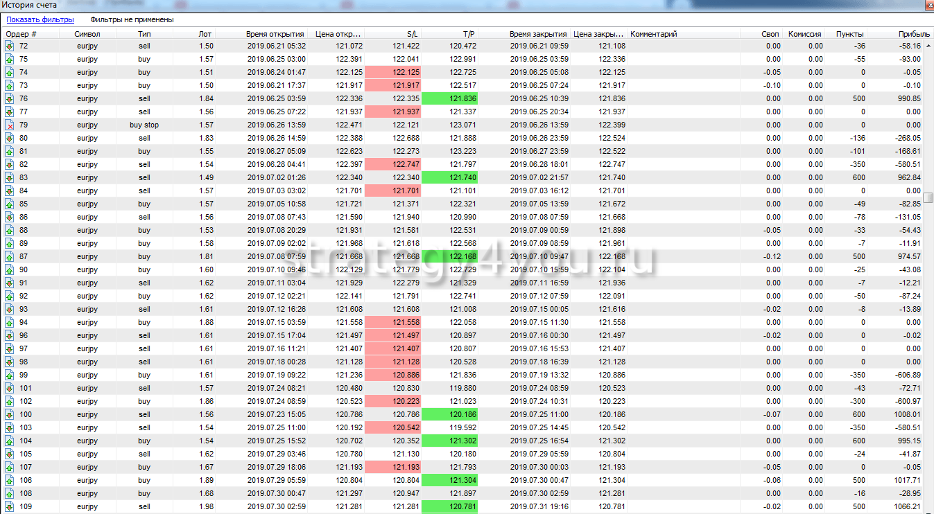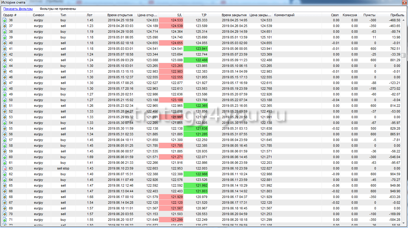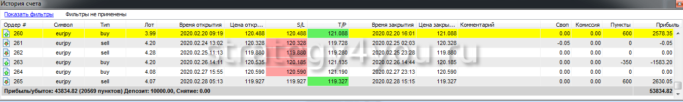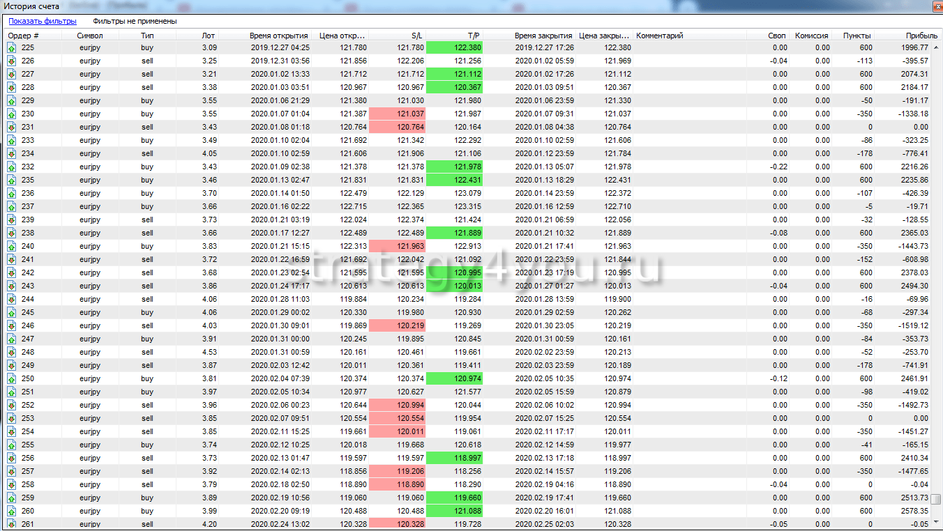 Подробную статистику теста для EUR/JPY смотрите в таблице ниже:
