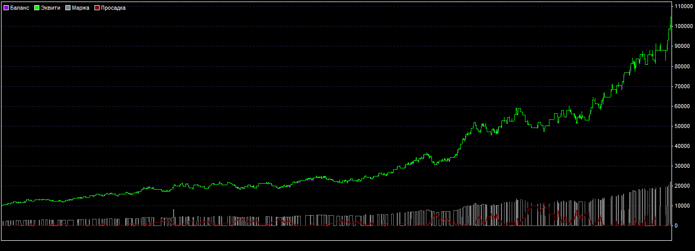 График восходящий и почти равномерный, а это очень хорошо. Просадки есть, но они не катастрофические.