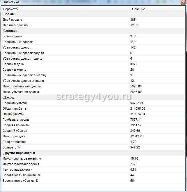 Всего сделок за этот год — 316. Прибыльных — всего 112. Убыточных — так же 142, остальные были закрыты в ноль.