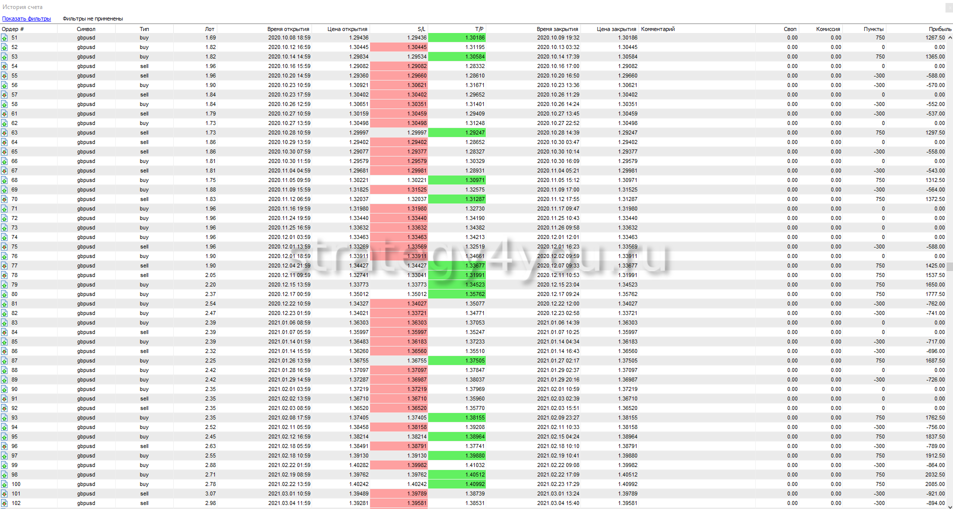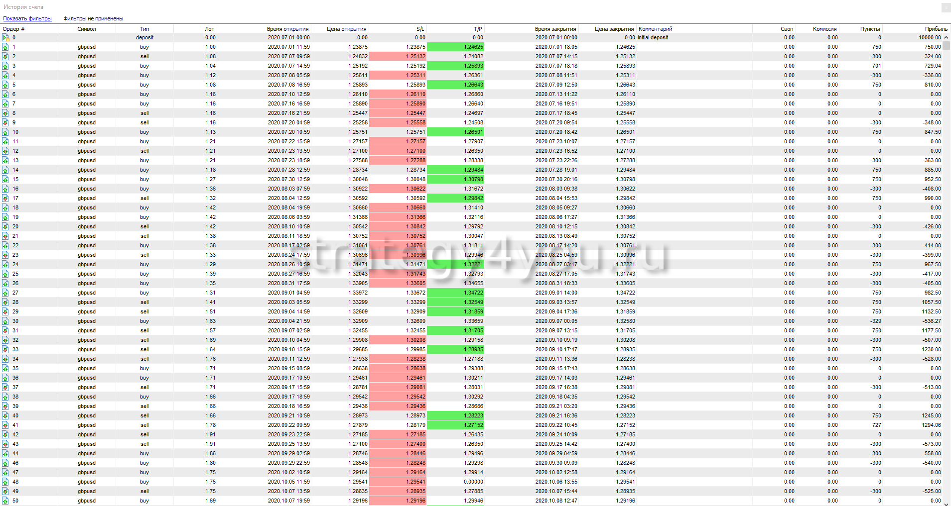 Стратегия для фунт-доллара оказалась прибыльна и стабильна (хотя и была небольшая просадка в конце), поэтому она вполне подходит для заработка на валютном рынке форекс и мы вам ее рекомендуем для торговли.