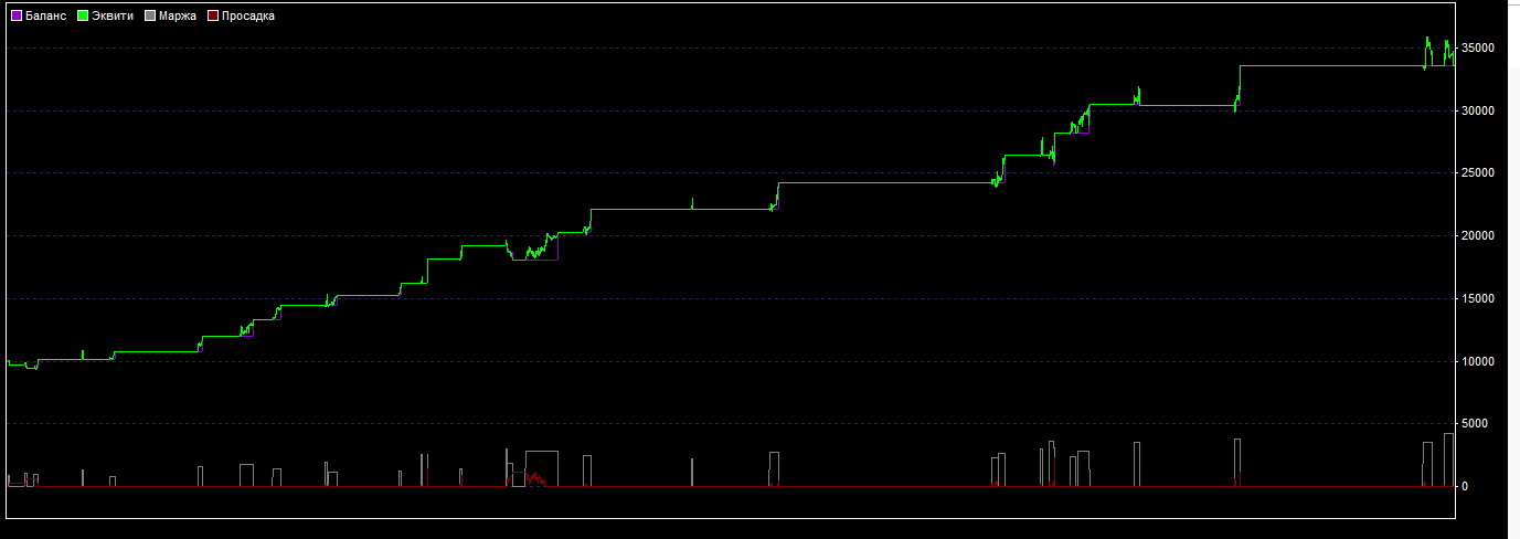 График равномерно восходящий, больших убытков по депозиту нет — вполне нормальная стратегия.