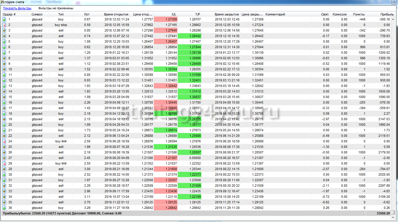 Отчет по всем сделкам за весь период тестирования: