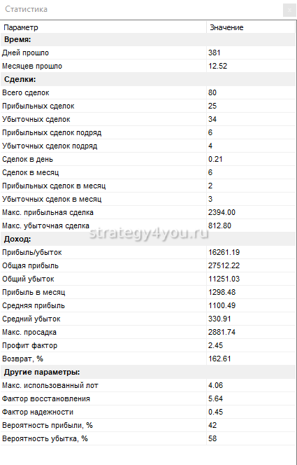 Стратегия оказалась прибыльна и вполне стабильна, поэтому вполне подходит для заработка на валютном рынке форекс.