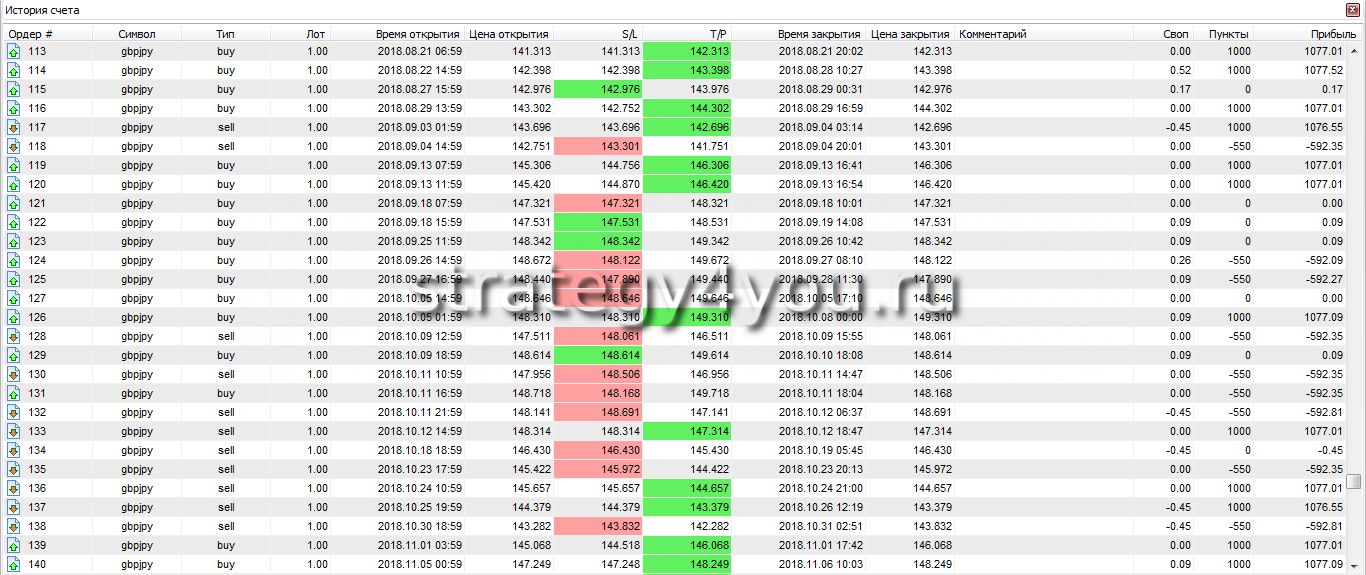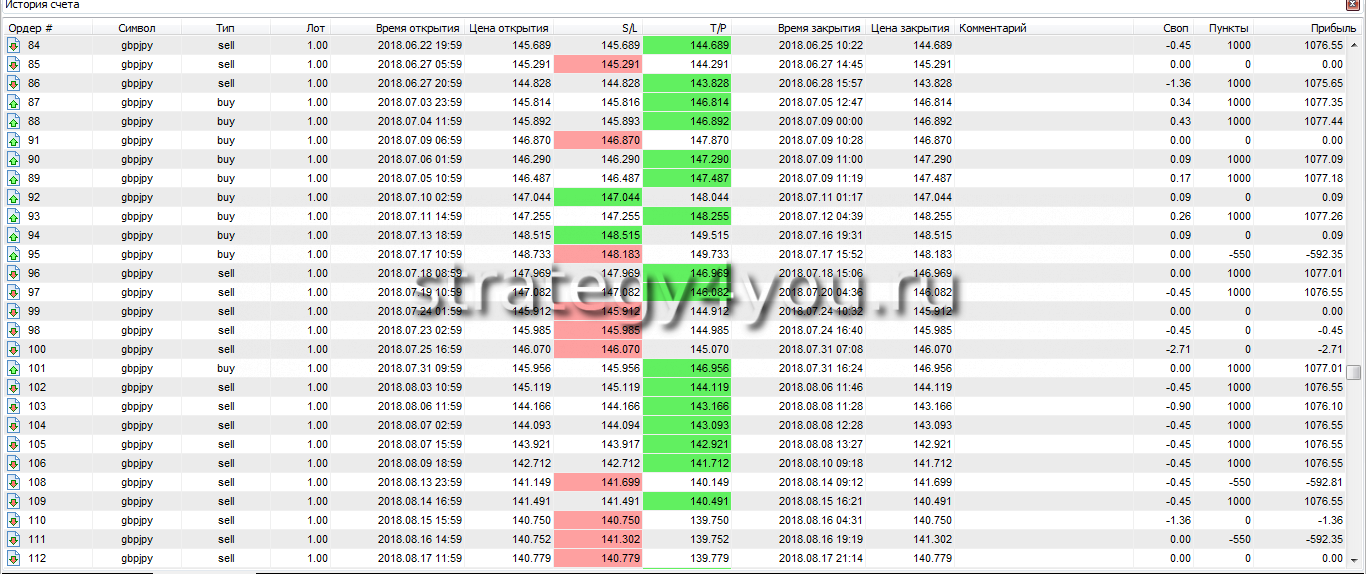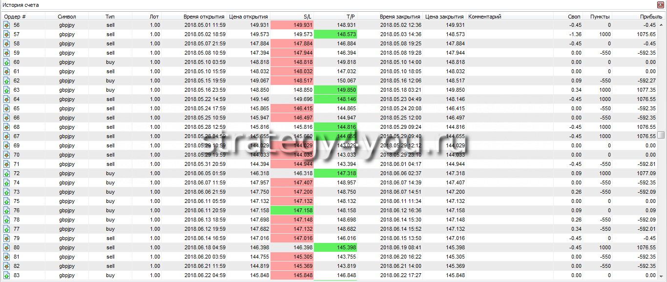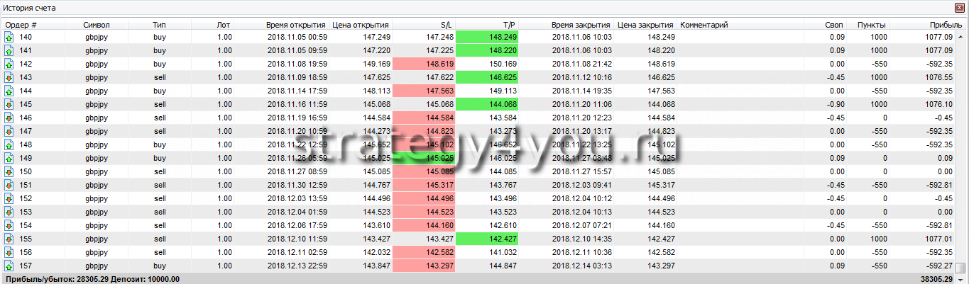 Результат за месяцев: +283,05% за 12 месяцев — это очень хороший результат, поэтому смело берите стратегию в свой «портфель», но не забывайте, что она трендовая и в период флета вы просто будуте торговать то в плюс, то в минус и депозит расти не будет.