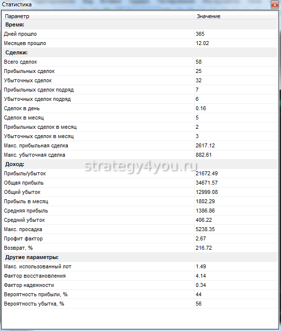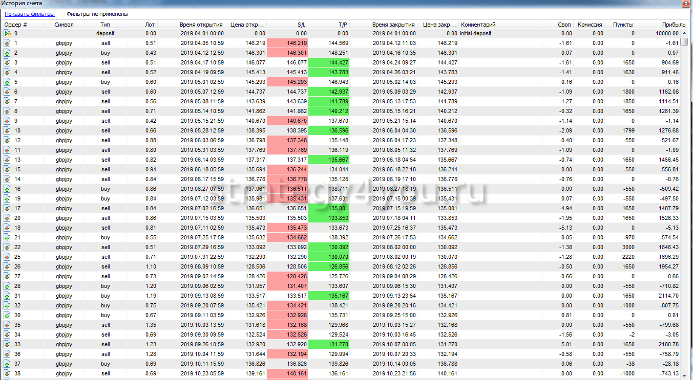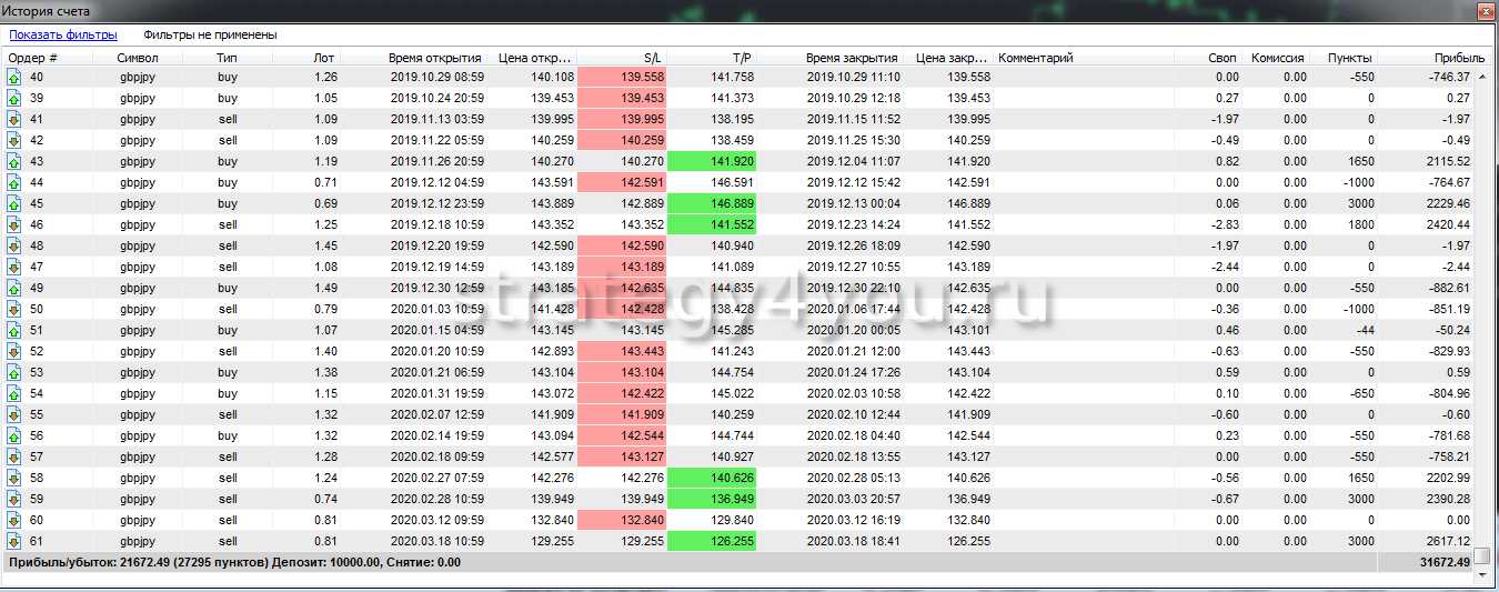 Подробную статистику теста для GBP/JPY смотрите в таблице ниже:
