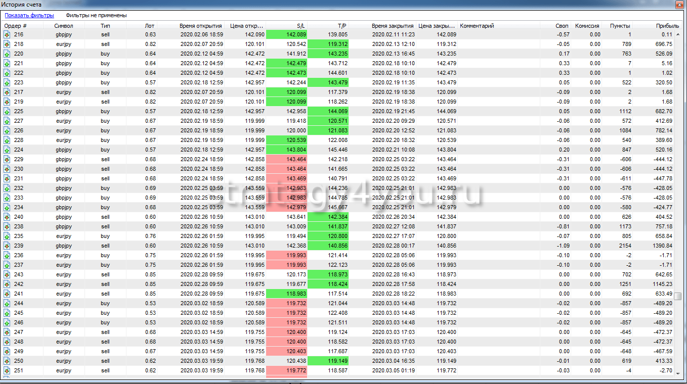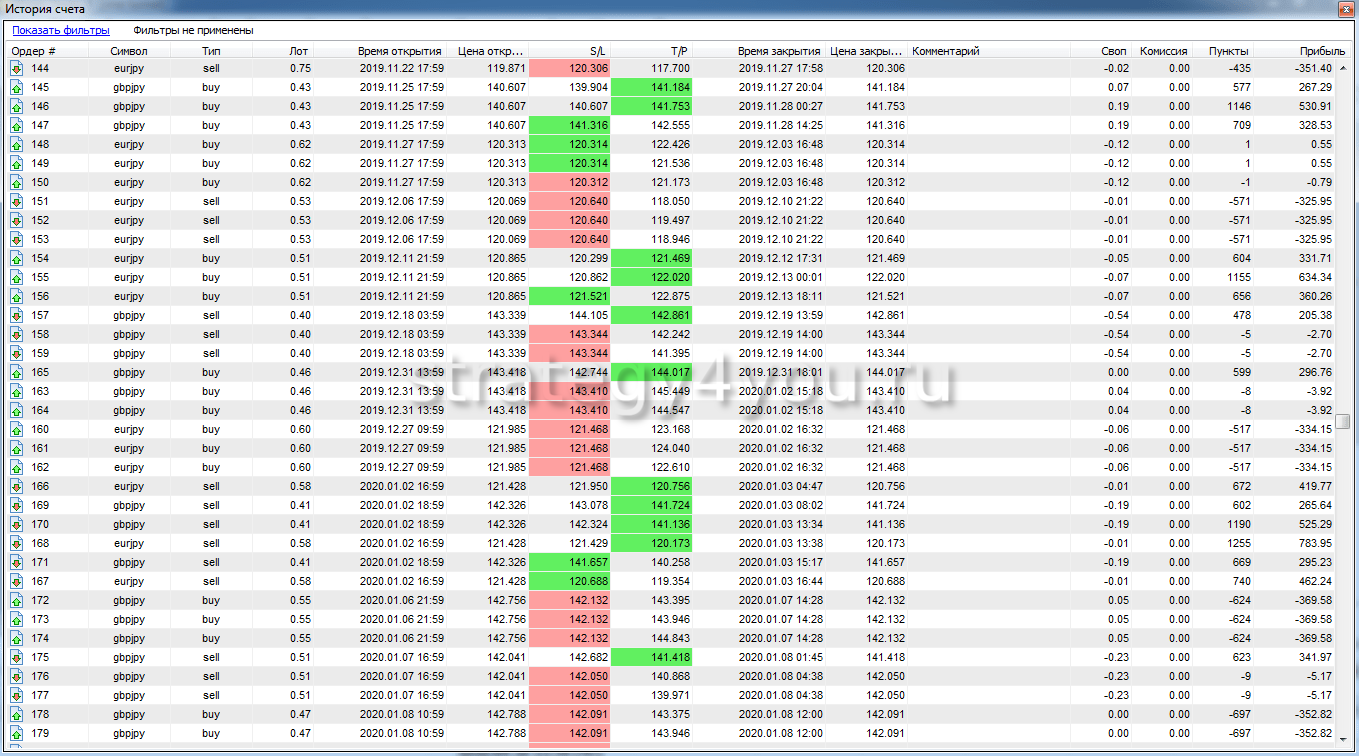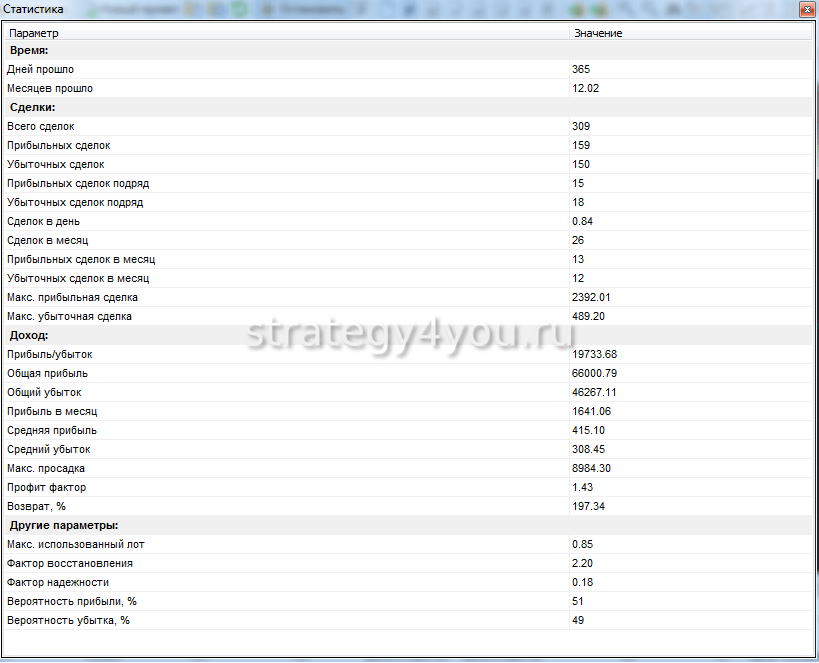 Всего сделок — 309. Прибыльных — всего 159. Убыточных — 150, остальные — закрыты в ноль.