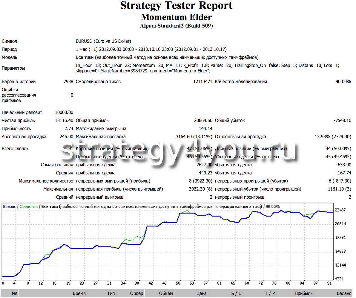 А теперь сами тесты советника Momentum Elder и комментарии к ним:
