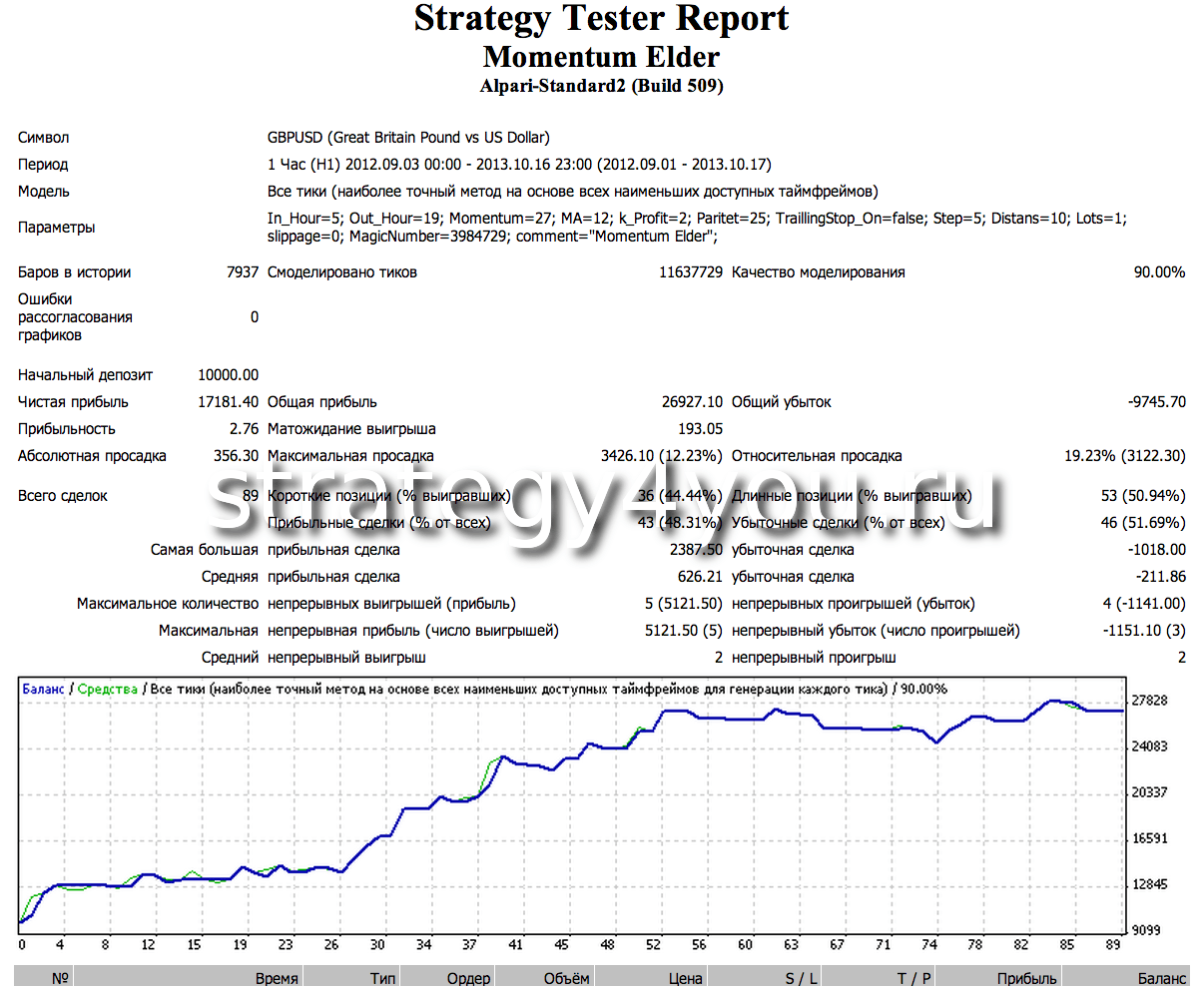 Продолжаем рубрику тестов стратегий форекс и сегодня публикую тест стратегии Momentum Elder — это мультивалютная индикаторная торговая система и подробное ее описание можете найти по ссылке: Стратегия форекс “Моментум Элдера”