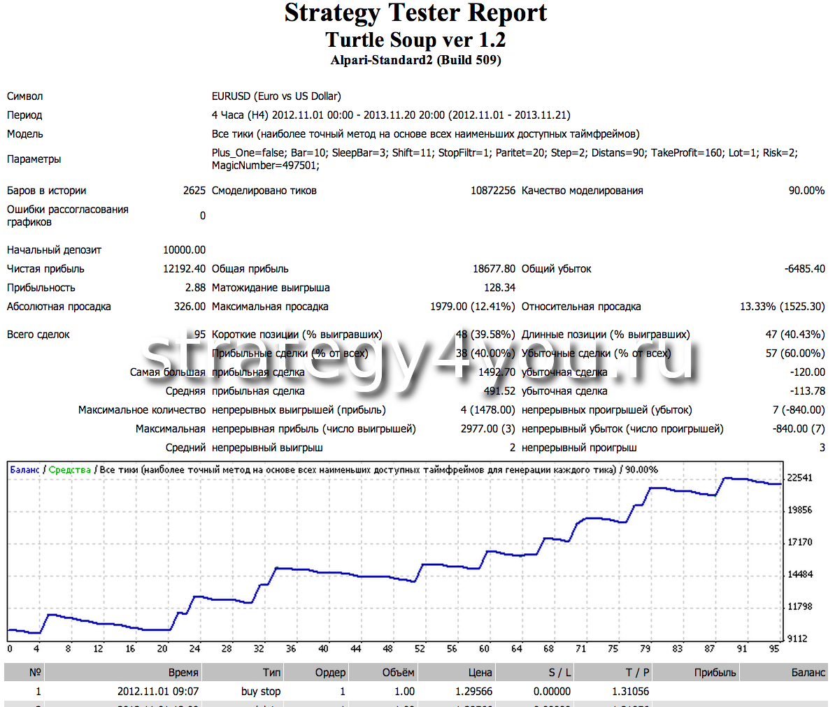- Тест стратегии Turtle Soup plus One для EURUSD (H4):