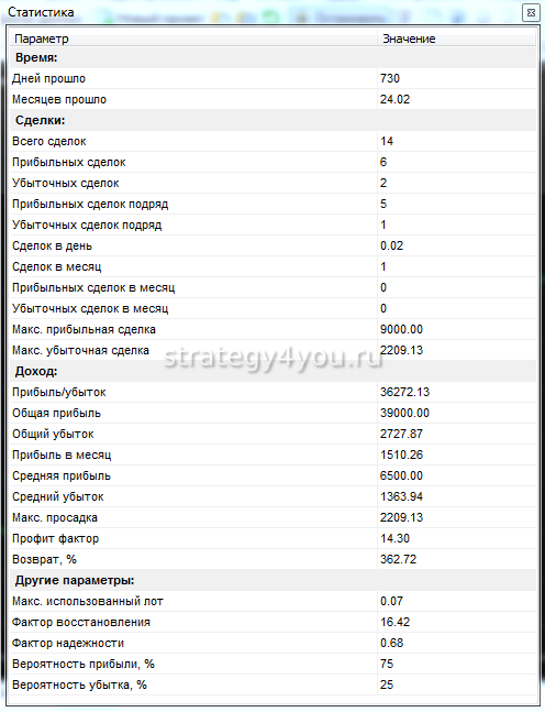 Подробную статистику этого теста по всем сделкам торговой системы смотрите в этой таблице: