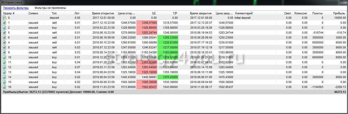 - Валютная пара — XAU/USD (золото), интервал D1+H1. Подробное описание торговой системы вы найдете по ссылке выше.