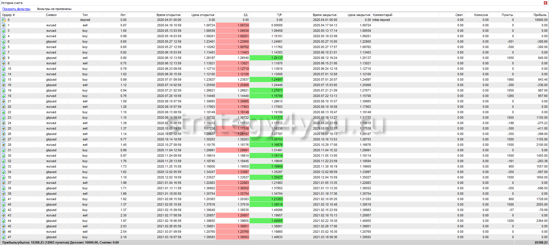 Заключение: получили прибыль за 12 месяцев тестирования ТС +153,98% по валютной паре GBP/USD + EUR/USD (H1+D1) с использованием динамического лота.