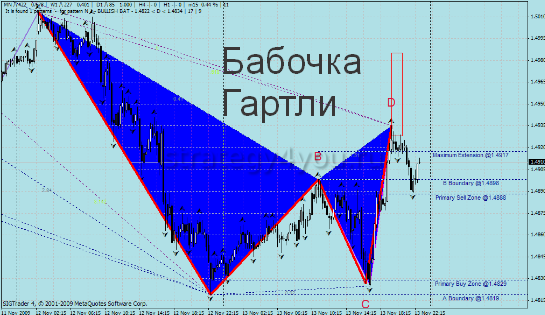 Чтобы построить гармонические схемы, необходимо учитывать очередность чисел Фибоначчи: при делении какого-либо числа из стандартного ряда на предыдущее число итоговая сумма логично стремится к значению 1,618. Дальше следует понять, как появились данные уровни с такими цифрами для бабочки Гартли индикатора.