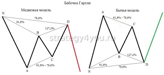Согласно теории графическая бабочка Гартли — это паттерн, который применяется в трейдинге ради анализа графиков и фиксации последующей стоимости. Так паттерны Гартли считаются самостоятельными коррекционными фигурами, отражающими продолжение текущей тенденции. В этом случае центральный тренд на время меняет свое привычное направление, до того как вернуться к начальному движению.